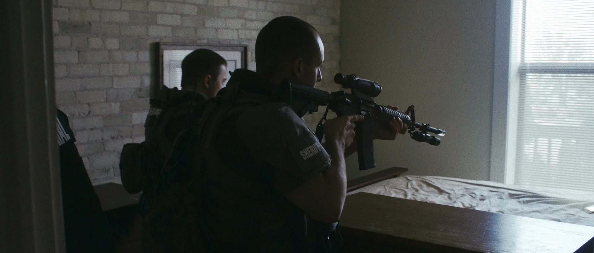 Telling a true story requires a high level of realism and accuracy so being able to work with our local Sheriff's department and SWAT team was incredibly valuable. Nearly every piece we've done with Armor Express has allowed us to collaborate with law enforcement, but it's never been as important or shaping as it was for this project. The SWAT officers provided equipment, gear, uniforms, weapons, and vehicles for the production. A majority of the people appearing in the film were officers who showed up in uniform for the production, and those who were not officers, our actors, were trained and given direction from the officers on set. I think it's fair to say that Connor Sweeney, once a regular civilian, is now well acquainted with how to properly approach and handcuff a suspect. He was not taught how to use the taser.